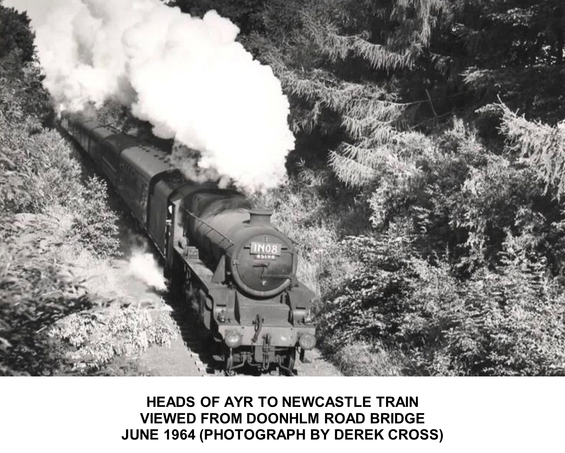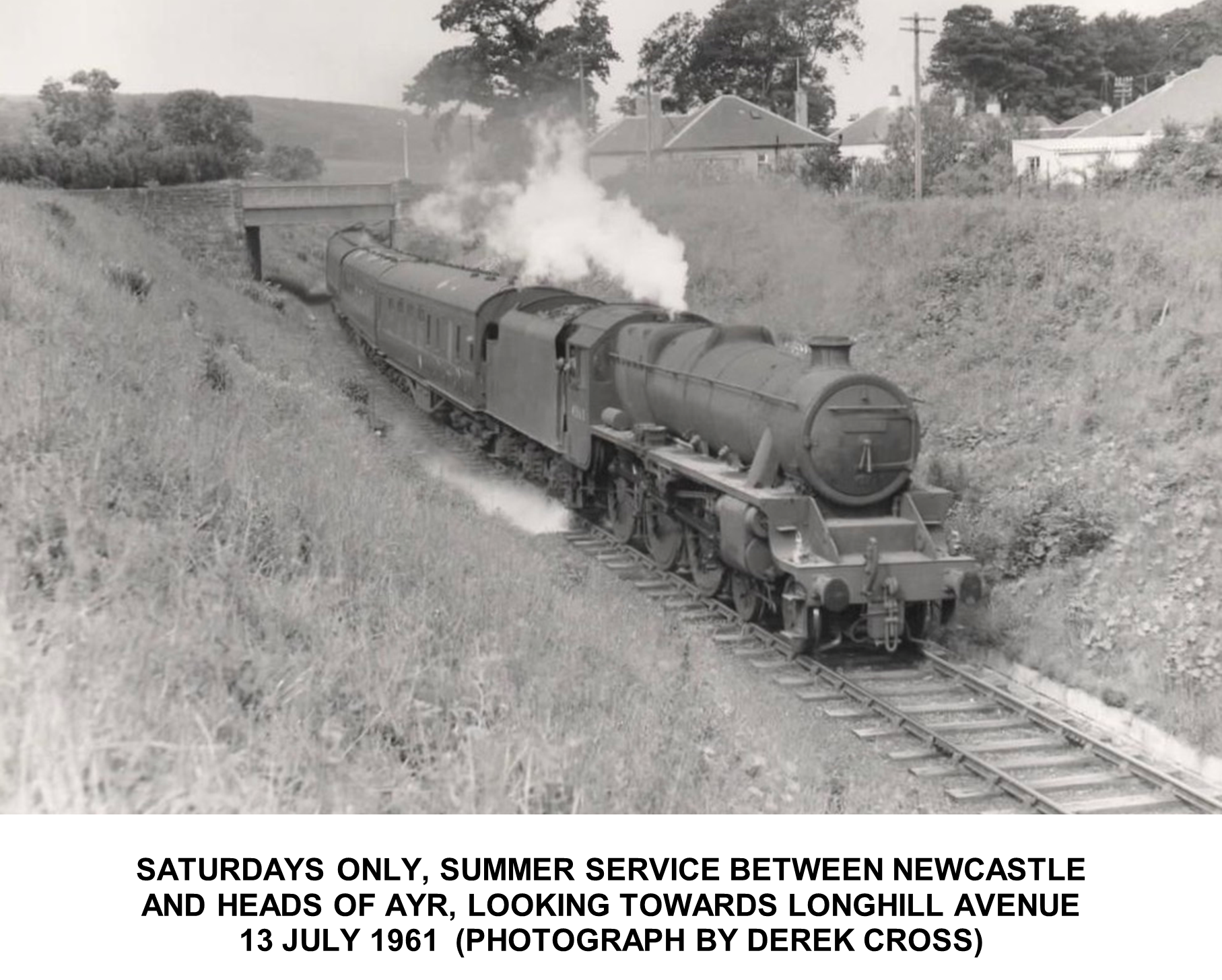 The first photograph shows Locomotive Black 5 45160 on the line between the site of the former Alloway Station and the bridge over Doonholm Road. This locomotive was heading towards Ayr on the Heads of Ayr to Carlisle service.