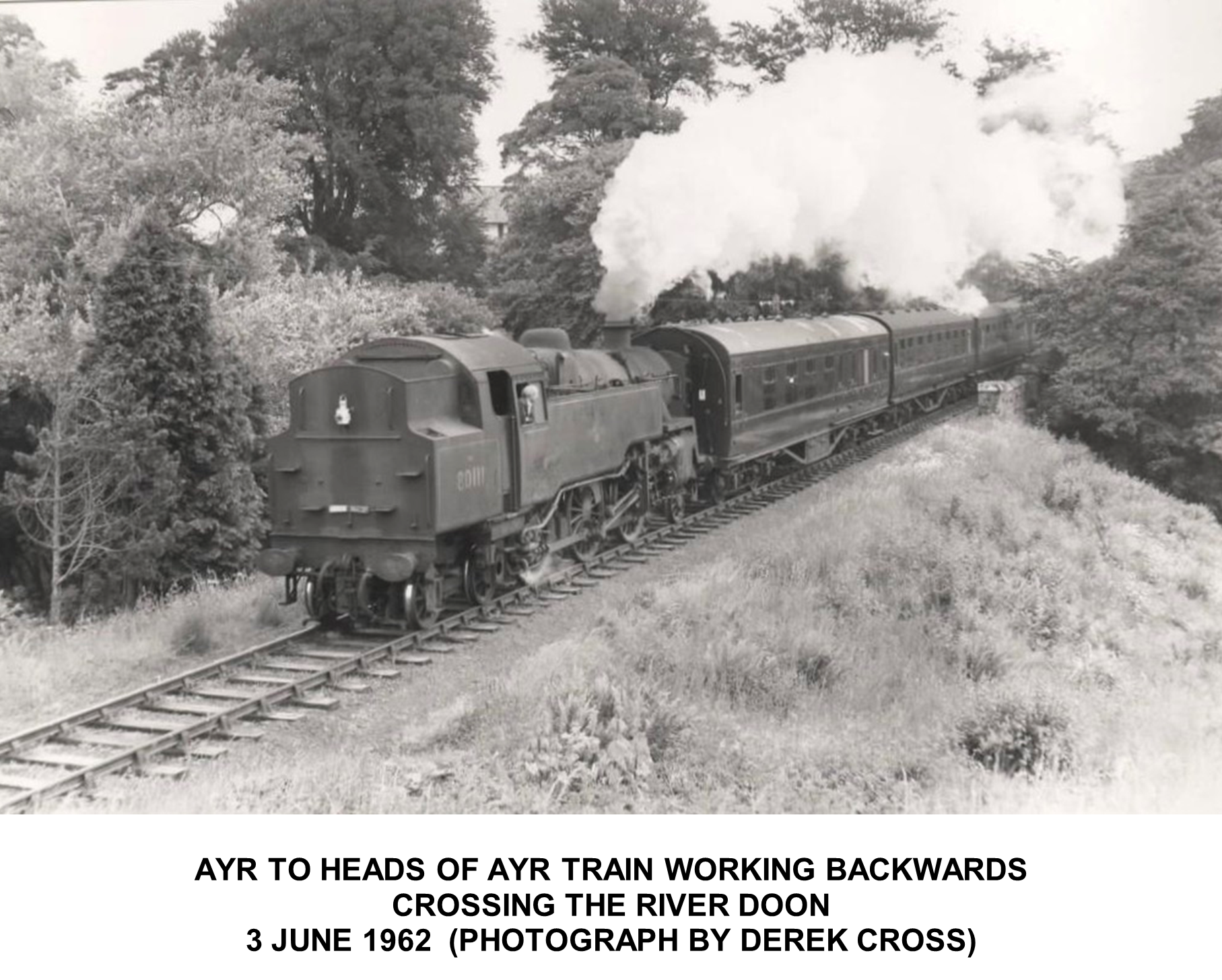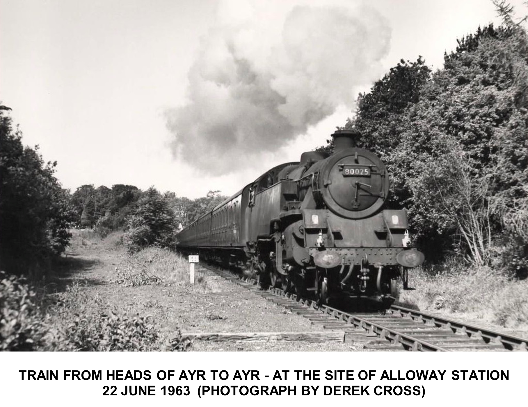 The train, Standard Tank Locomotive 80025, in Photograph 5 is a local train from Heads of Ayr to Ayr, passing the site of Alloway Station.